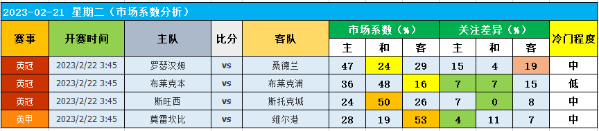 注:市场数据与关注差异均有出现深色标记的选项为大概率出现冷门!