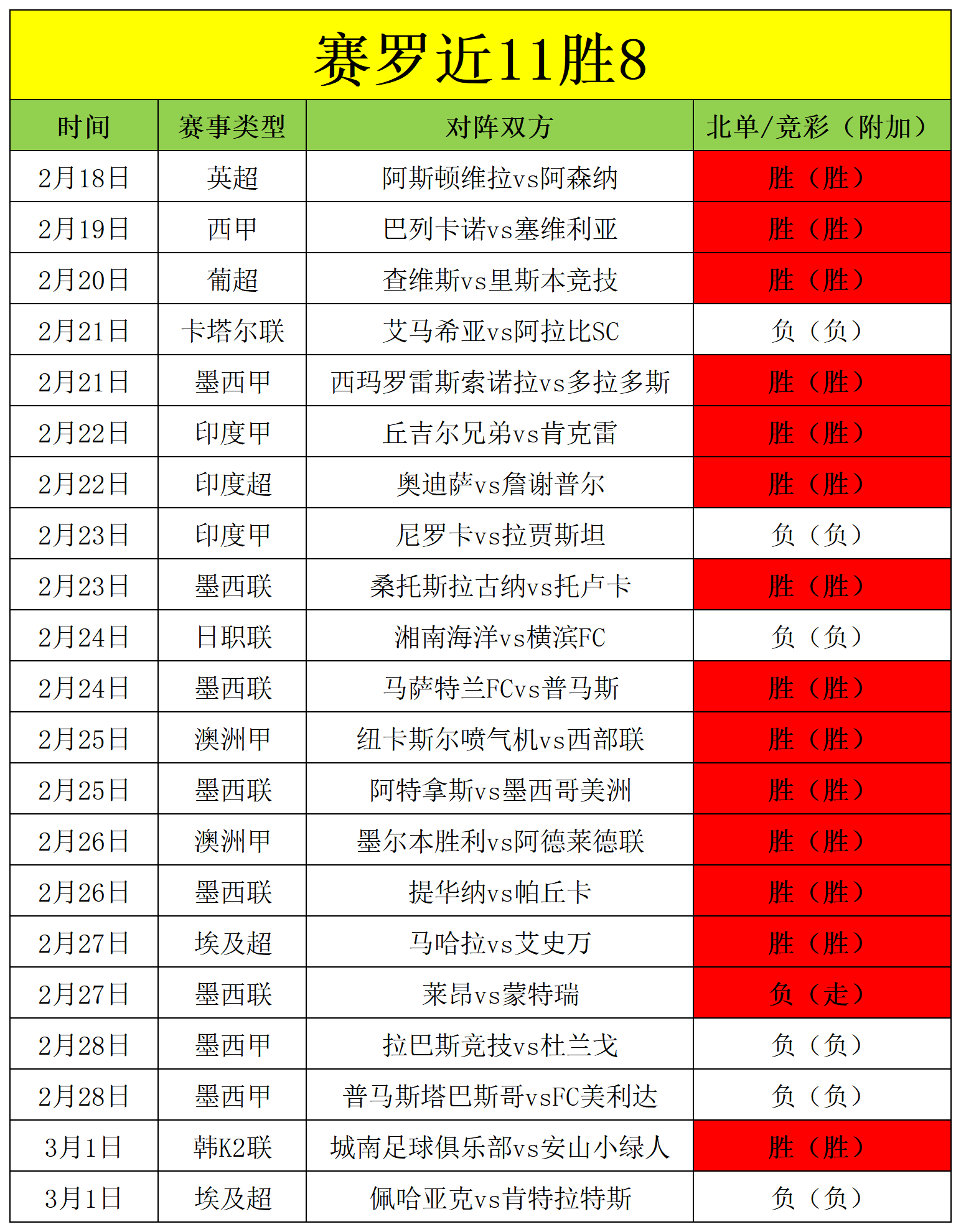 昨天分享的2场赛事1胜1负,近期整体成绩11胜8,胜率高达73%,笔者战绩长期稳定,今天继续稳定出击。