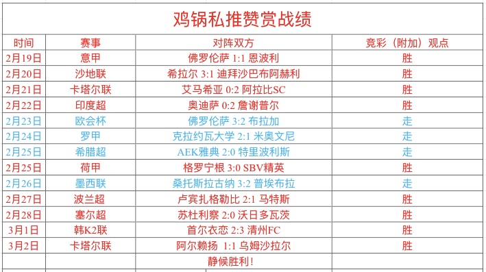 需要鸡锅更多赛事参考的朋友可以去鸡锅的公推文章下面赞赏获得每日临场赛事精选