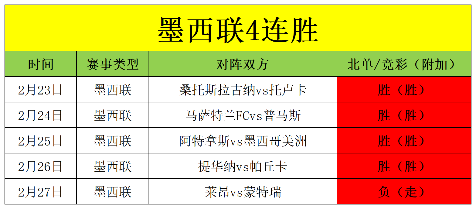 昨天分享的3场比赛竞彩2胜1负,近期成绩14胜10,保持稳定,今天早场已经分享了一场澳洲甲的比赛,接下来2场比赛重点出击墨西联,笔者近期对墨西联特别进行了深研,墨西联近期的成绩也证明了笔者的分析能力,墨西联近期5场赛事均保持不败,目前4连胜。