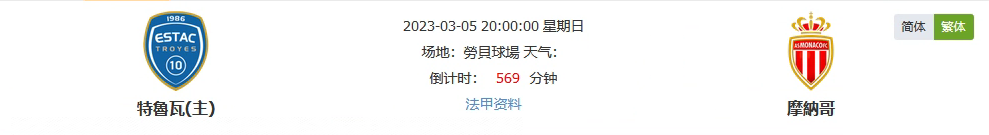 北京时间2023年03月05日20点00分,双方实力悬殊,特鲁瓦此役能否抵挡摩纳哥的进攻?摩纳哥会反客为主吗?