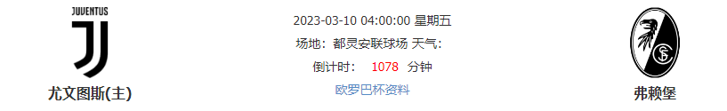 北京时间3月10日的凌晨04点00分,欧罗巴杯赛事的1/8决赛的首回合较量将继续展开激烈的角逐——其中,意甲豪门尤文图斯将会坐镇都灵安联球场迎战来自德甲的劲旅弗赖堡!近5场各项赛事未尝败绩的弗赖堡能否延续强势在客场全身而退?还是本赛季主场表现稳定的老妇人能够迅速调整重返胜轨,在首回合中先下一城?