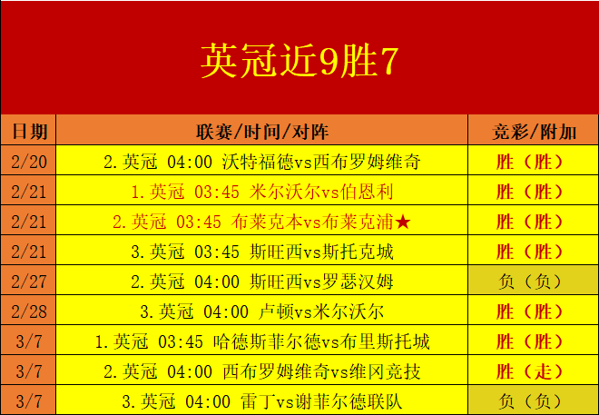 英冠赛程近半月时间表现精彩,在9场赛事里取得了7场的胜利观点分享,同时葡超联赛也是近段时间欧战里表现优秀的一个精彩板块,本板是周末收官前的准备之战,携手英冠联赛和擅长的葡超联赛进行周中的冲击准备!