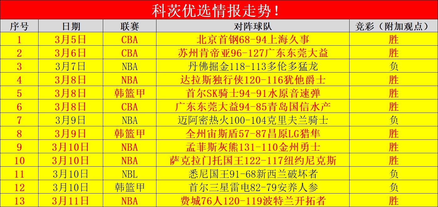 上期NBA顺利拿下!科茨的实力大家有目共睹近期收获了一波13胜9的佳绩,在早前曾创下了10连胜佳绩并且多次拿下连胜,老牌作者的情报也是稳定超高胜率,给出的情报旗开得胜印证了老牌作者的实力并非空穴来风。本期科茨再战韩篮甲赛场,新一期的赛事期待与大家携手再创辉煌,在老牌作者科茨的带领下能够凭借丰富的经验轻松化解比赛难题,本场我们追击韩篮甲向连胜发起冲击!
