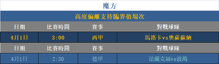 利用「魔方關系」進行支持趨勢預測分析,超越臨界數值之上可視為低機率方向,此方式對比賽方向分析有顯著幫助效果。