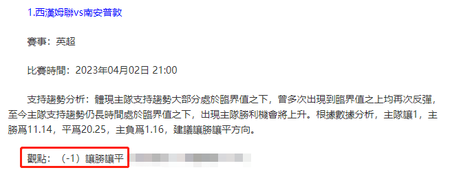 【解鎖內容為以上賽事支持趨勢預測圖展示,以及根據分析預測圖進行相對低機率方向觀點判斷。解鎖內容僅代表個人知識領域觀點,與本網站無關】