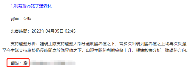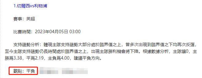 【解鎖內容為以上賽事支持趨勢預測圖展示,以及根據分析預測圖進行相對低機率方向觀點判斷。解鎖內容僅代表個人知識領域觀點,與本網站無關】