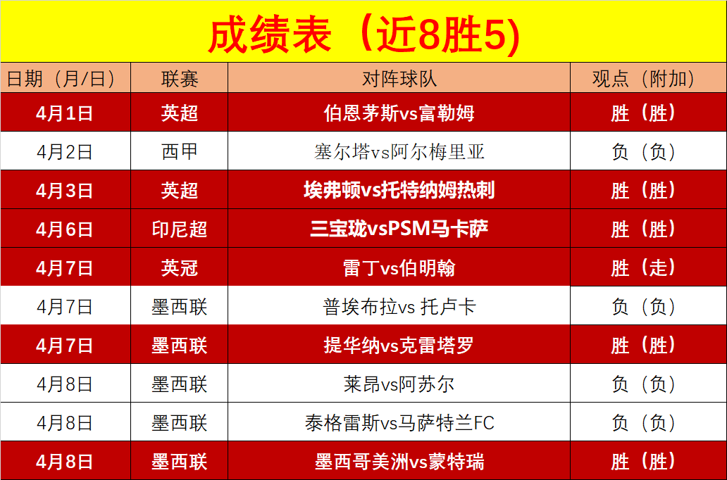 昨天墨西哥美洲的观点正确,其余2场稍有遗憾,近期成绩8胜5,精选墨西联继续。