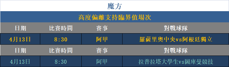 利用「魔方關系」進行支持趨勢預測分析,超越臨界數值之上可視為低機率方向,此方式對比賽方向分析有顯著幫助效果。