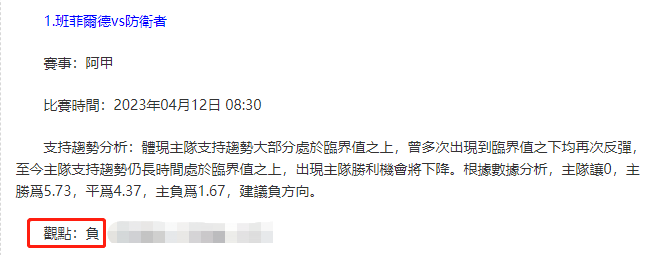 【解鎖內容為以上賽事支持趨勢預測圖展示,以及根據分析預測圖進行相對低機率方向觀點判斷。解鎖內容僅代表個人知識領域觀點,與本網站無關】