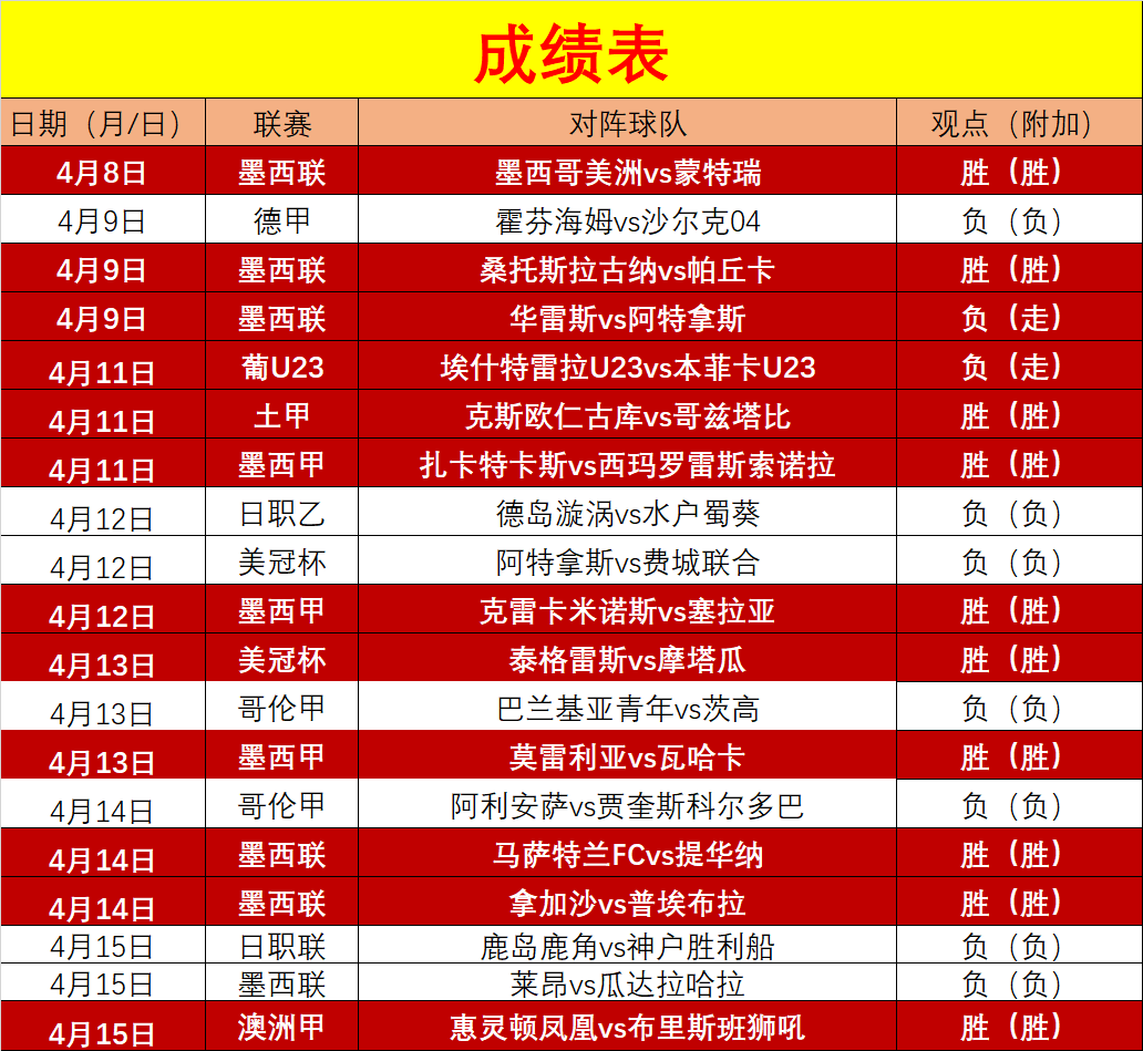 战绩回顾:昨天澳洲甲打出,日职和墨西联少有失误,今天继续有看好的比赛。