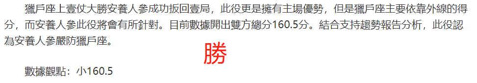 【解瑣內容為以上賽事支持趨勢預測圖展示,以及根據分析預測圖進行相對低機率方向觀點判斷。解瑣內容僅代表個人知識領域觀點,與本網站無關】