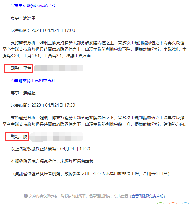【解鎖內容為以上賽事支持趨勢預測圖展示,以及根據分析預測圖進行相對低機率方向觀點判斷。解鎖內容僅代表個人知識領域觀點,與本網站無關】