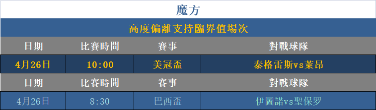 利用「魔方關系」進行支持趨勢預測分析,超越臨界數值之上可視為低機率方向,此方式對比賽方向分析有顯著幫助效果。