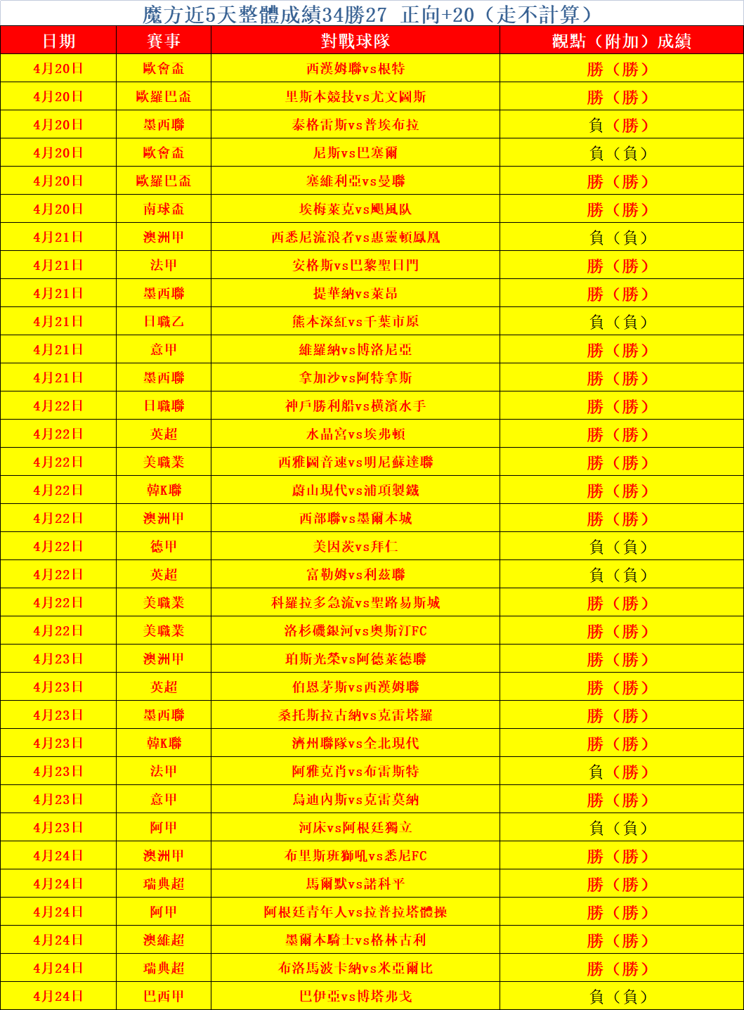 魔方狀態大開!昨日再奪6勝5。金場斬獲近11連勝!近5天整體成績34勝27,正向+20!接下來魔方將會不斷努力務求精益求精!早場連續3天全勝,今日繼續對美賽進行深研。
