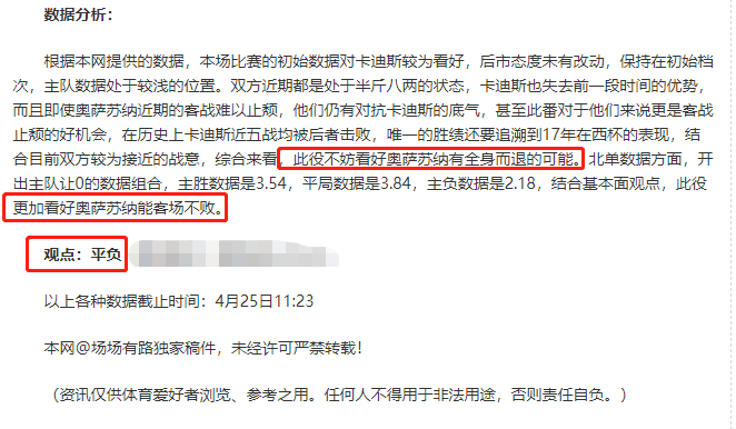 本人作者名场场有路,顾名思义,就是每场进行分析的比赛都是思路,按部就班进行。多年在各大权威外界进行比赛数据归类统计,由于对体育比赛数据有长期的统计经验,根据其规律,研发出一套对规律延伸出来的分析思路,有效率经过长期考验,令人满意。