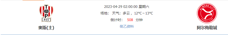 北京时间2023年4月29日02:00,荷兰足球乙级联赛,奥斯主场对战阿尔梅勒城,本场比赛是奥斯保持不败取分?还是客场作战的阿尔梅勒城取得胜利?数据对于两队又有如何倾向?近16场取胜14场的小明给大家带去精准分析,希望有一个不错的结果。