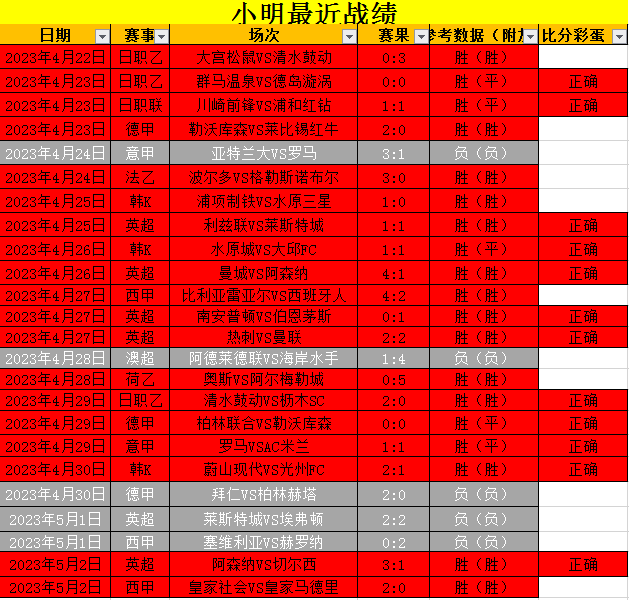 昨天2场比赛成功拿下,并且收获1200%比分!周一失利以后,昨天成功反弹!近期取得24场比赛胜19的佳绩,小明两周时间内达成15连胜成就,是值得大家长期关注的。第一场:阿森纳3:1切尔西,本场比赛阿森纳还需要积分保证自己夺冠希望,切尔西已经摆烂到底了,本场比赛选择阿森纳方面成功拿下,并且本场比赛小明结合两队防守质量,成功助力大家收获3比1的1200%比分!第二场:皇家社会2:0皇马,本场比赛继续拿下!两个皇家队伍关系很好,小明已经在文章中给大家详细说明了,皇马本场也算送上人情分,我们选择主队再次拿捏。近期小明比分命中率超高,有喜欢研究比分的朋友们,可以一起探讨。希望今天也能够分析正确,给大家带去理想的赛果。