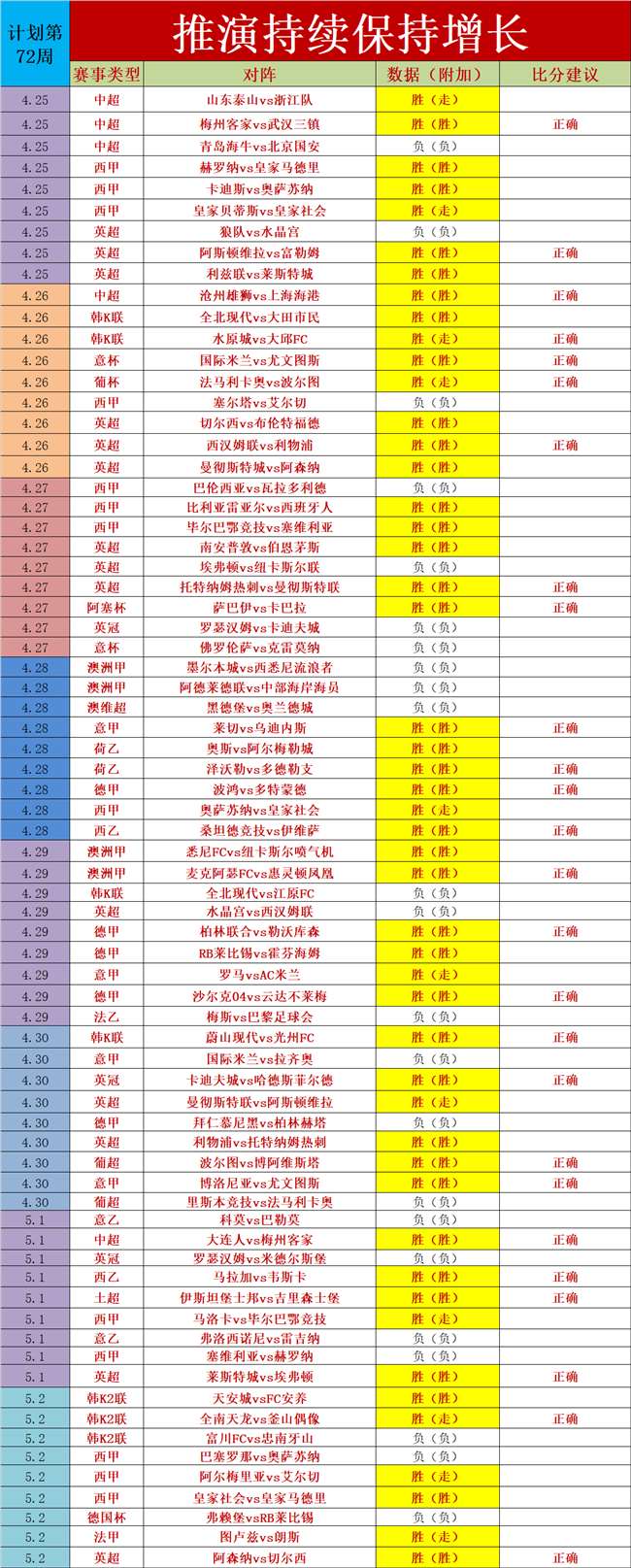不要因短暂的一两天成绩下滑就因此放弃,成绩恢复后又再进行关注和选择,这样会导致计划中断,因为足球不可能一场或者一夜就能解放,一周或者一个月保持着的增长,才是永远的胜利者,所以提醒大家不要选择性的关注,推演是追求长期的,只要按照推演士每周的计划进行,必定是有所增长的,每周保持稳定,才是理性长期的发展。