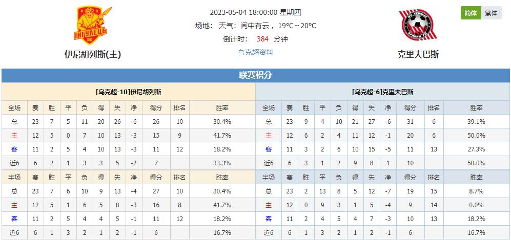 北京时间2023年05月04日18:00,乌克超迎来第24轮赛事,伊尼胡列斯vs克里夫巴斯,两队本赛季的表现相差不大,此番交手,他们会擦出怎样的火花呢?我们来看看。
