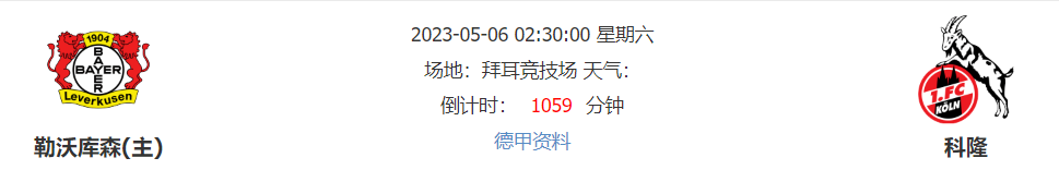 北京时间5月6日02:30,2022-23赛季德国足球甲级联赛第31轮打响,勒沃库森主场迎战科隆。勒沃库森在各方面均占据优势之下,本场坐镇主场初始力度一般,后市强升数据进行造势,这对于球队大胜十分不利。