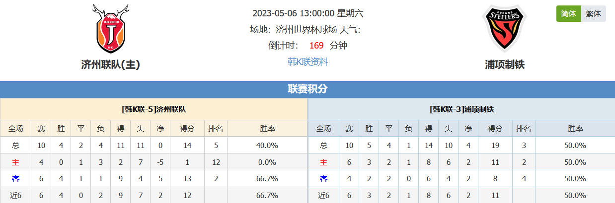 笔者昨天与大家分享了一场澳洲甲附阿德莱德联vs惠灵顿凤凰的比赛,主队阿德莱德联延续了两队上场交锋的强势,上下半场各进1球扩大优势以2:0的比分战胜了惠灵顿凤凰,同时笔者的赛前分析方向也是得到顺利走出,笔者的近期表现为12胜11并且是8连胜的优秀状态,为了快速扩大目前胜利的优秀状态,本日为大家带来一场韩K联的比赛,济州联队vs浦项制铁,希望能通过本场比赛的分析再创佳绩,能得到各位的认可,和大家分享更多更好的见解,有望各位多多支持!
