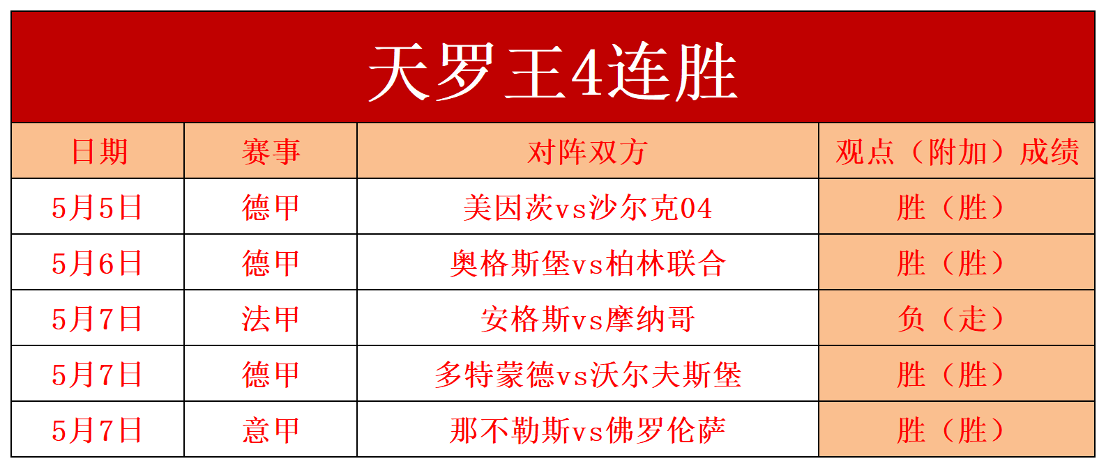 昨天第一场的法甲打平,第二场德甲进球数方向稳稳拿住,第三场意甲主胜方向也准确无误,近期勇夺4连胜,笔者状态强势回归,今天乘胜追击。