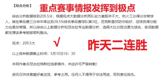 昨天情报CBA、NBA赛事顺利取胜!近期拿下4胜3成绩!情报赛事分析一直是尼古拉强项,精准赛事再出击,3月份尼古拉拿下9连胜辉煌战绩还是历历在目,2月10连胜再次顺利跑出,赛事精彩敬请留意!此前作者创下3次双位数胜战绩,掌握着一手赛事资深情报,本期继续分享充满奇妙体育赛事,敬请大家持续关注!!