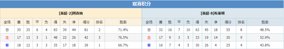 不过结合对赛双方在近年来的10次交锋可以发现,阿森纳在面对布莱顿的时候仅取得了3胜3平4负的战绩,其中包括在本赛季的两次交手(1次联赛、1次英联杯)中取得1胜1平的表现,可见阿森纳其实在交锋中并未占得太多的优势?