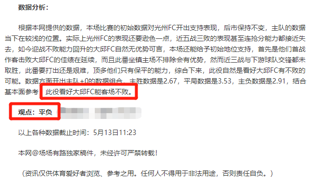 本人作者名场场有路,顾名思义,就是每场进行分析的比赛都是思路,按部就班进行。多年在各大权威外界进行比赛数据归类统计,由于对体育比赛数据有长期的统计经验,根据其规律,研发出一套对规律延伸出来的分析思路,有效率经过长期考验,令人满意。