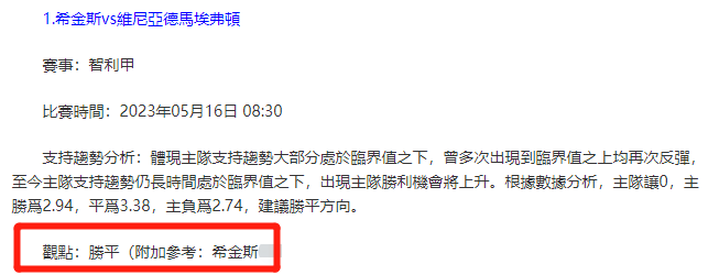 【解鎖內容為以上賽事支持趨勢預測圖展示,以及根據分析預測圖進行相對低機率方向觀點判斷。解鎖內容僅代表個人知識領域觀點,與本網站無關】