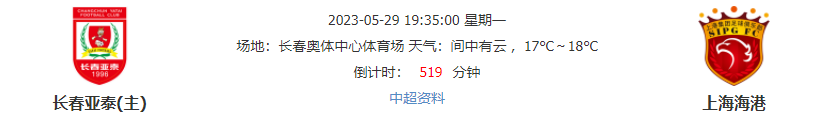 北京时间5月29日的晚上19点35分,中超联赛的第10轮赛事的末组对决即将迎来一场焦点角逐!——老牌劲旅长春亚泰将会坐镇长春奥体中心体育场迎战豪门球会上海海港!目前正值四连胜且赛季至今保持不败金身的上海海港能否延续状态带走三分?还是近期状态回勇明显的长春亚泰能够如愿捍卫主场?