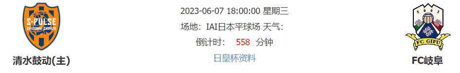 1、2023赛季日本足球天皇杯第二圈打响,清水鼓动主场迎战FC岐阜。日皇杯参赛队伍为所有日本足协成员球队,赛事共7轮,J1、J2联赛球队从第2轮开始参加,赛事均为一场定胜负制,冠军获得下赛季亚冠资格。清水鼓动上赛季排名日职联倒数第2为,从而直接降入日职乙联赛;作为本赛季日职乙降班马,球队表现并不好,上轮联赛客场1-2不敌山行山神,近4轮联赛失利3场,目前7胜7平5负积28分排名日职乙第10位,不过球队攻防两端表现均十分出色。