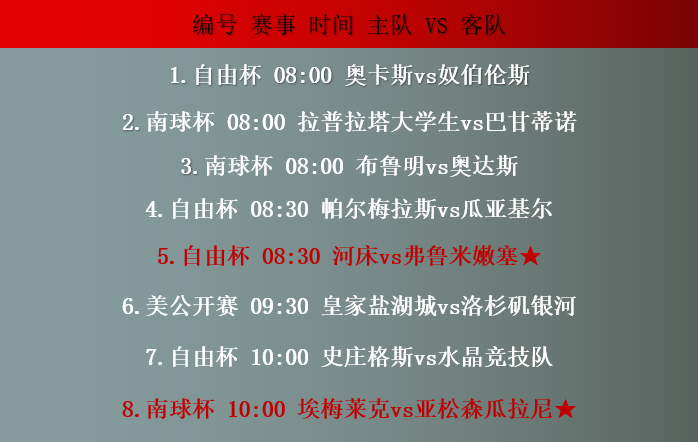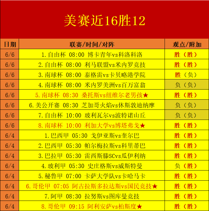 昨日美赛8场表现胜负参半不过不失,整体表现依然处于稳定的增长轨道,近16场美洲赛事里收获了12场胜利表现,合计是一个胜+8的优秀向上成绩,本日美赛以多项杯赛进行组合,争取延续美赛的稳定发挥,在周中的赛事积累里继续突破!