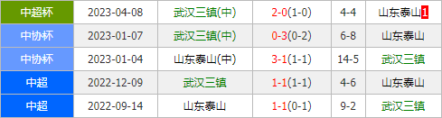 不过对赛双方在近年来为数不多的5次各项赛事的交锋当中可以发现,武汉三镇在面对山东泰山只取得1胜2平2负的战绩,但也在近一场的中超杯里有过2-0击败对手的表现,因此从这种情况下球队或许在心理层面上并不会落于太大的下风?