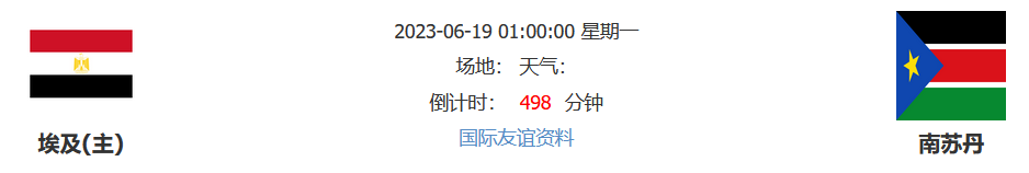 北京时间2023年6月19日01时00分,国际友谊赛2023赛季六月赛程,埃及vs南苏丹,埃及近期在国际赛程连续获胜,状态和士气都有着不少的提升,本场友谊赛面对世界排名在百位开外的南苏丹,球队能否延续此前的优质状态继续取得连胜?让我们一起期待!