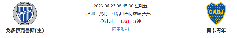 北京时间6月23日08:45,2023赛季阿根廷足球甲级联赛第21轮打响,戈多伊克鲁斯主场迎战博卡青年。博卡青年在各方面均占据优势之下,本场作客初始力度显然不足,同时回馈不低,球队想要客场取胜难度较大。