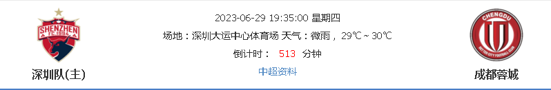北京时间2023年6月29日19:35,2023 中国超级联赛,深圳队vs成都蓉城,此役是中超联赛第13轮的较量,深圳队上轮联赛客场1-4完败给长春亚泰,近两轮连败,此役坐镇深圳大运中心体育场迎战成都蓉城,两队如何对峙?下面由本作者为大家做详细阐述。