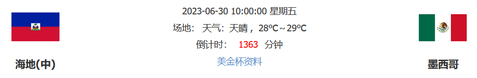 北京时间6月30日10:00,美金杯2023赛季B组第2轮比赛,海地vs墨西哥,两队在首回合的赛事里都分别战胜对手拿下三分,本场比赛的胜利将会对小组排名有着直接的影响,谁能获得胜利女神的青睐?让我们拭目以待!
