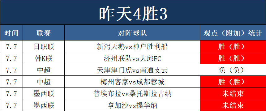 精彩分享:昨天为周末打下基础,昨天4胜3的战绩,日职和韩K大获全胜,中超的梅州冷门打出,今天周六,我们乘胜追击。
