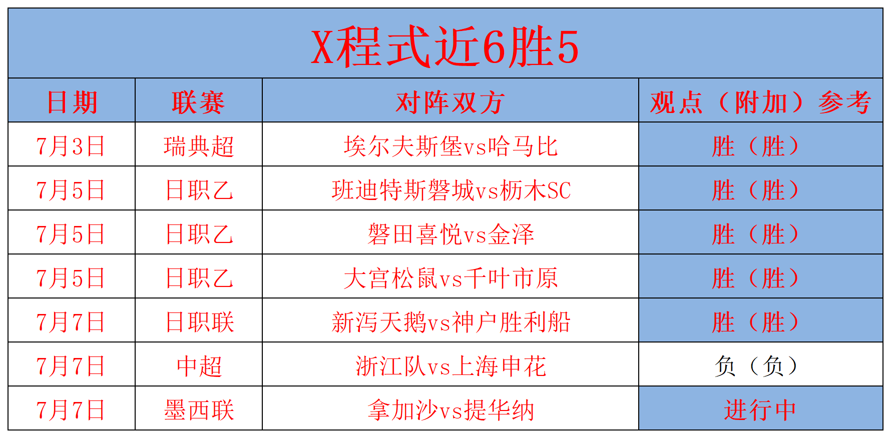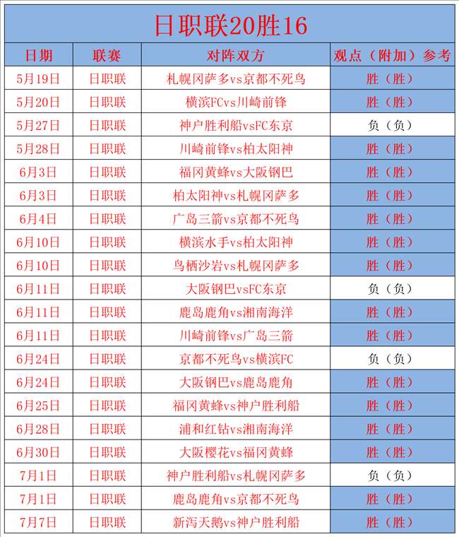 2、近期战绩回顾:近期成绩6胜5,保持稳定。昨天的日职联再次打出,对于日职联,笔者有自己独到的见解,日职联本赛季至今也取得了20胜16的佳绩,胜率高达80%,目前2连胜,今天继续重点出击。