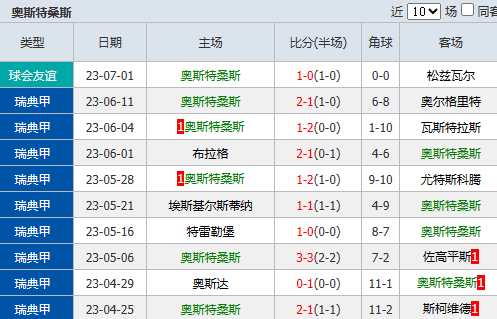 2、奥斯特桑斯在实力上并不落下风,在近6次和赫尔辛堡的交锋中,他们拿到了3胜2平1负的战绩。