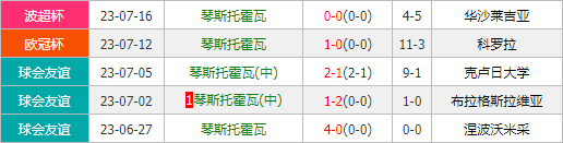 但在两天前的一场波兰超级杯的赛事里,琴斯托霍瓦则与华沙莱吉亚踢到点球大战才分出胜负,很可惜球队还是惜败对手未能如愿捧杯。但在首回合与科罗拉的欧冠赛事,琴斯托霍瓦在全场各项数据都占得极大的主动权,乌克兰前腰科切尔金在下半场为球队打入了制胜进球,个人竞技状态保持得非常不错。此外,加上此前所进行的3场热身赛,琴斯托霍瓦取得了3胜1平1负的不俗战绩,球队当前士气状态还是非常不错哒~