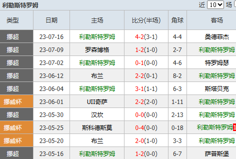 2、两队过往有过多次交锋记录,在近期10场的交手中,利勒斯特罗姆4胜3平3负,略占上风,