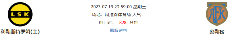 北京时间07月19日23点59分,2023挪超联赛第11轮的一场补赛,奥勒松将前往阿拉森体育场与利勒斯特罗姆展开较量。利勒斯特罗姆本季在联赛中整体走势平稳,本轮面对客场虫奥勒松,主队有望轻取三分。