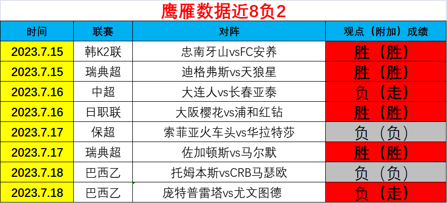 鹰雁昨日两场巴西乙失1场,近8场负2场,状态保持稳定。今天与大家分享一场欧冠杯赛事拉恩vs赫尔辛基,接下来鹰雁将继续创造快乐并与大家共同分享,望多多支持!