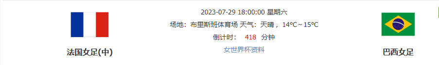 法国女足:法国女足世界排名是第五名,他们首场小组赛就出大冷,0:0被实力偏弱的牙买加女足战平,只拿到1分。而本场比赛就会迎来和巴西女足的强强对话。法国女足队内主要球员来自于法甲联赛,少部分球员来自于皇马和其他一些联赛。法国女足在去年的欧洲杯上是1:2不敌德国女足,无缘决赛。相比较法国男子队有姆巴佩这样的超级球星,法国女足的队内本届杯赛确实没有超级球星。她们主打1套433,依靠的还是自己的传控打法。