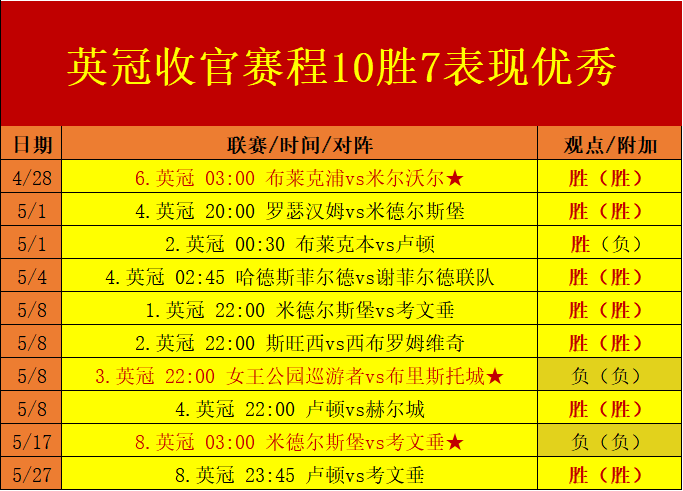 昨日已经完成的9场赛事取得6场胜利观点方向收获胜+3,单日正增基础已经成功奠定,从7月至今的双月进度里取得胜+40的精彩增长,本日进入8月首次的周末收官赛程,携手优秀的英冠赛事+比甲联赛进行欧赛组合,英冠在上季的收官赛程里拿下了10胜7的优秀增长成绩,比甲联赛也是继欧洲五大联赛休赛期后作出支撑的优秀板块之一,携手专精板块强强联合,争取以优秀表现打下收官战的首场战役!