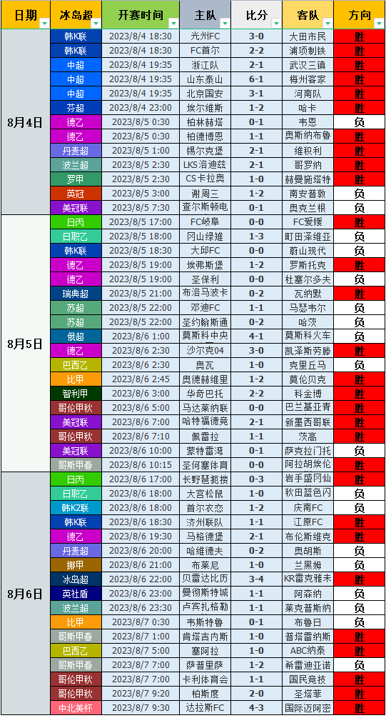 昨天数据表现不错,整体17胜9!昨天数据中,早场的表现一般,日职和韩职都是一胜一负表现平稳!晚场的表现一般,其中德乙进球数顺利打出,非常的不错!而冰岛超进球数则是完美的打出,非常的精彩!英社盾杯曼城真的是被天克,连续3年都未能拿下,真的是绝缘体!夜场的表现不错,其中哥斯甲一胜一负表现平稳!巴西乙则是完美的打出,非常的精彩!当然哥伦甲和中北美杯的表现更为精彩,全部都完美的拿下,非常的精彩!