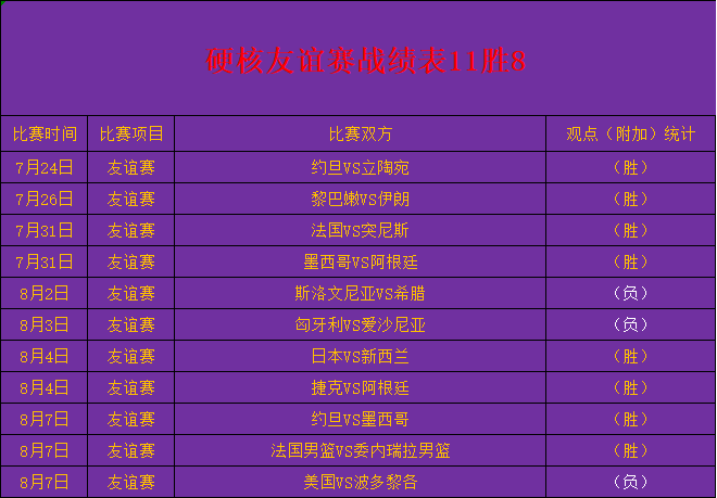 作者近两次十一连胜彰显了实力,在七月份也是多次带领众粉丝取得不少连胜的成绩,在近期寥寥无几的比赛中拿下宝贵的胜利,在昨日三战赛事都未能延胜,近期取得了16胜11的成绩,其中友谊赛取得了11胜8的成绩,作者强势回归收复失地继续带领粉丝吃香喝辣,接下了会延续2022年的状态的。让我们携手同行2023!